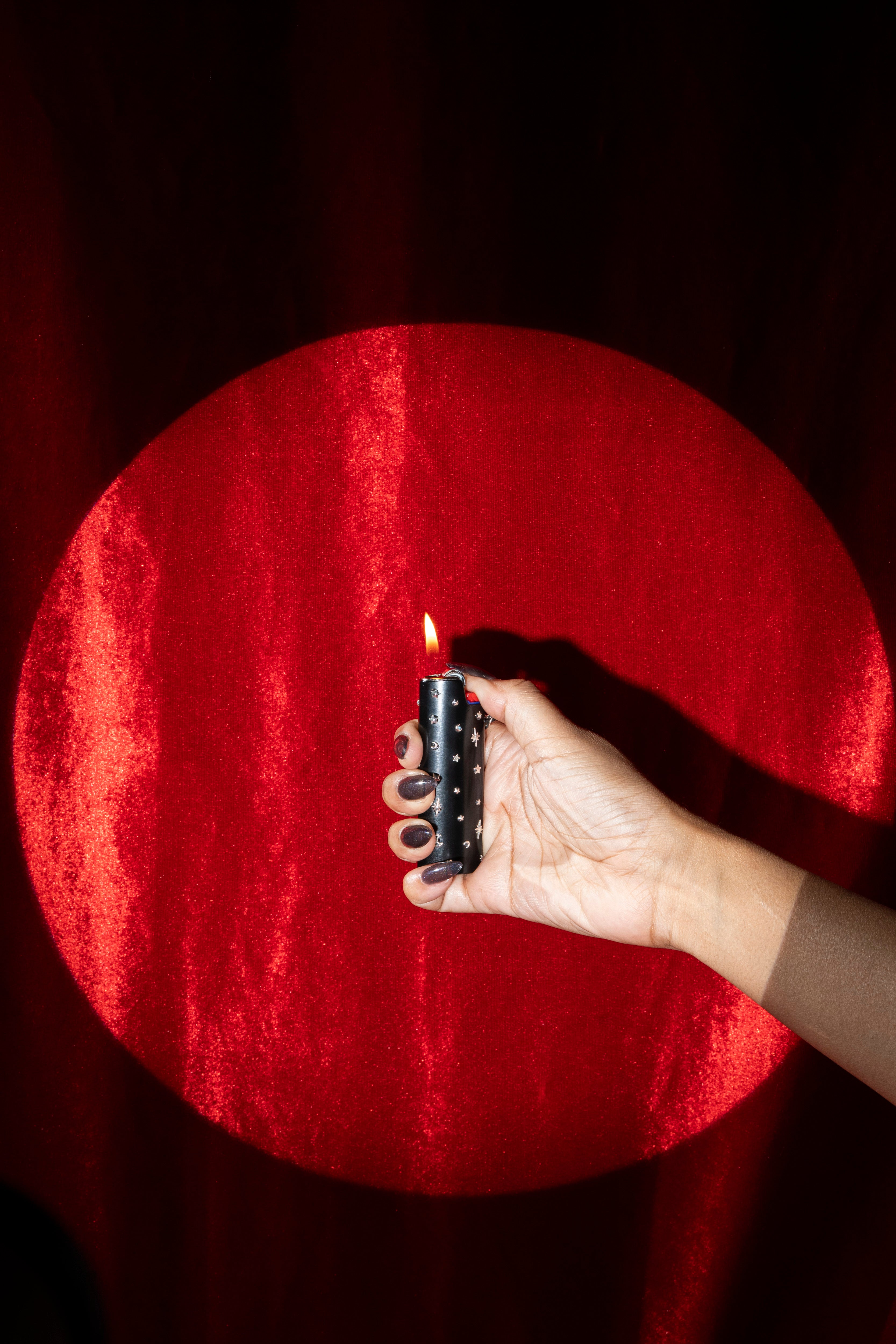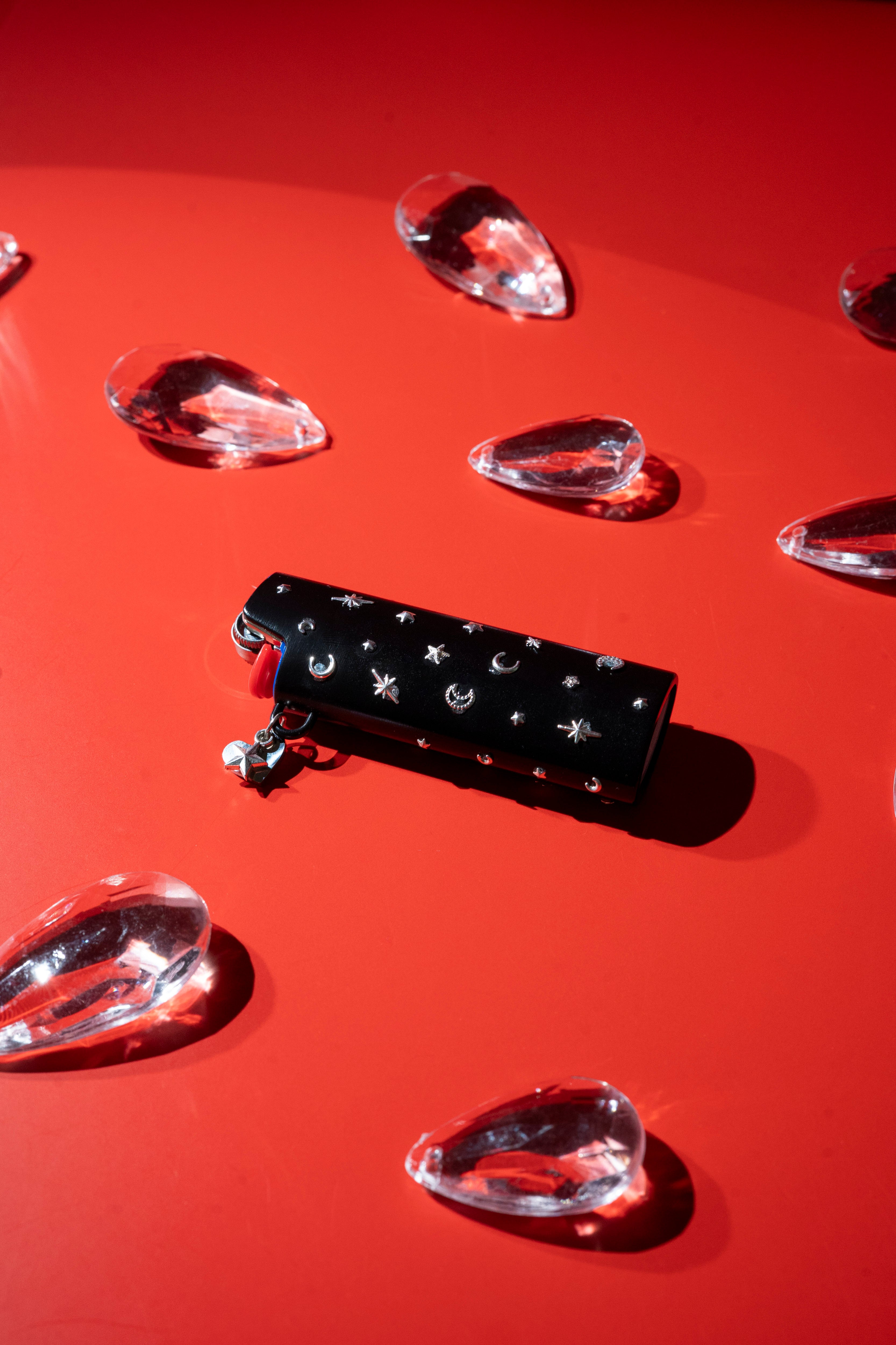 This adorable lighter cover features silver moons and stars from top to bottom! It even has two adorable dangly charms on the side - a heart and a star! Never be seen with a boring old lighter ever again! The best part about these cases is that when your lighter dies, you can just pop a new one in.