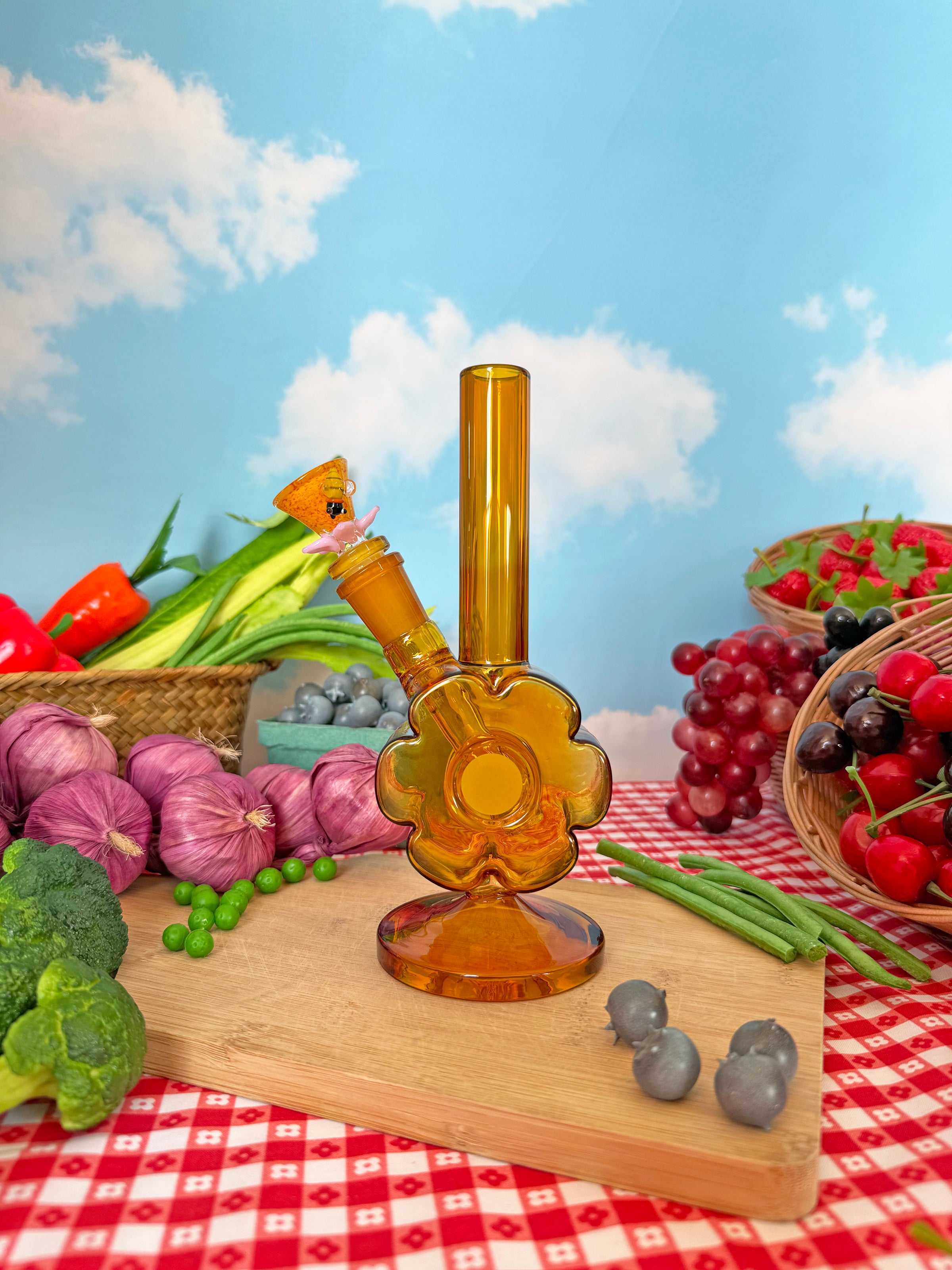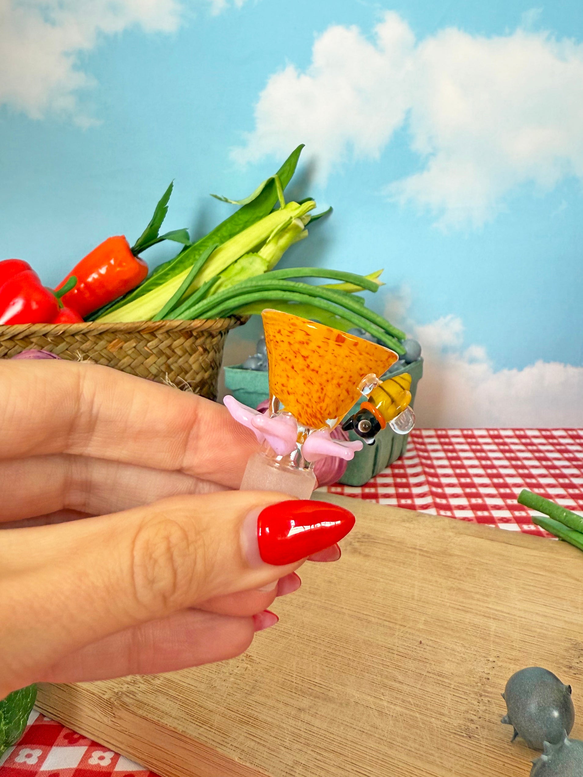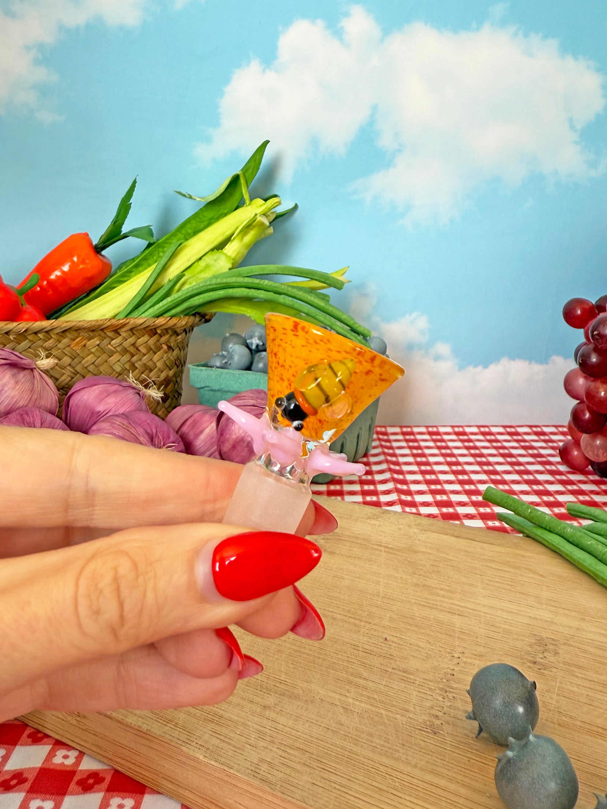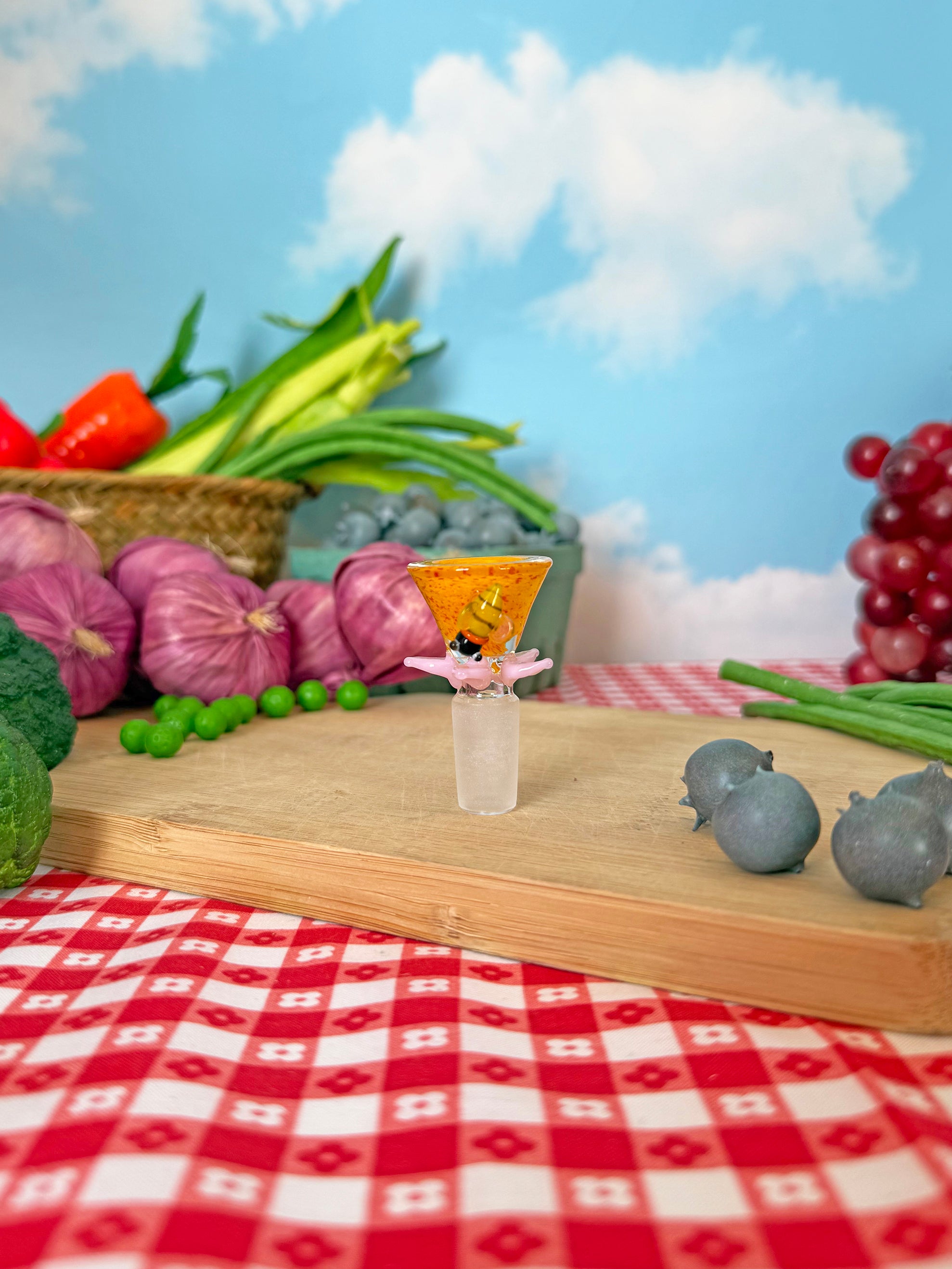 This adorable slide features a pink flower at the base, a bright yellow bowl, and a cutie little bumblebee friend on the side - so precious!!