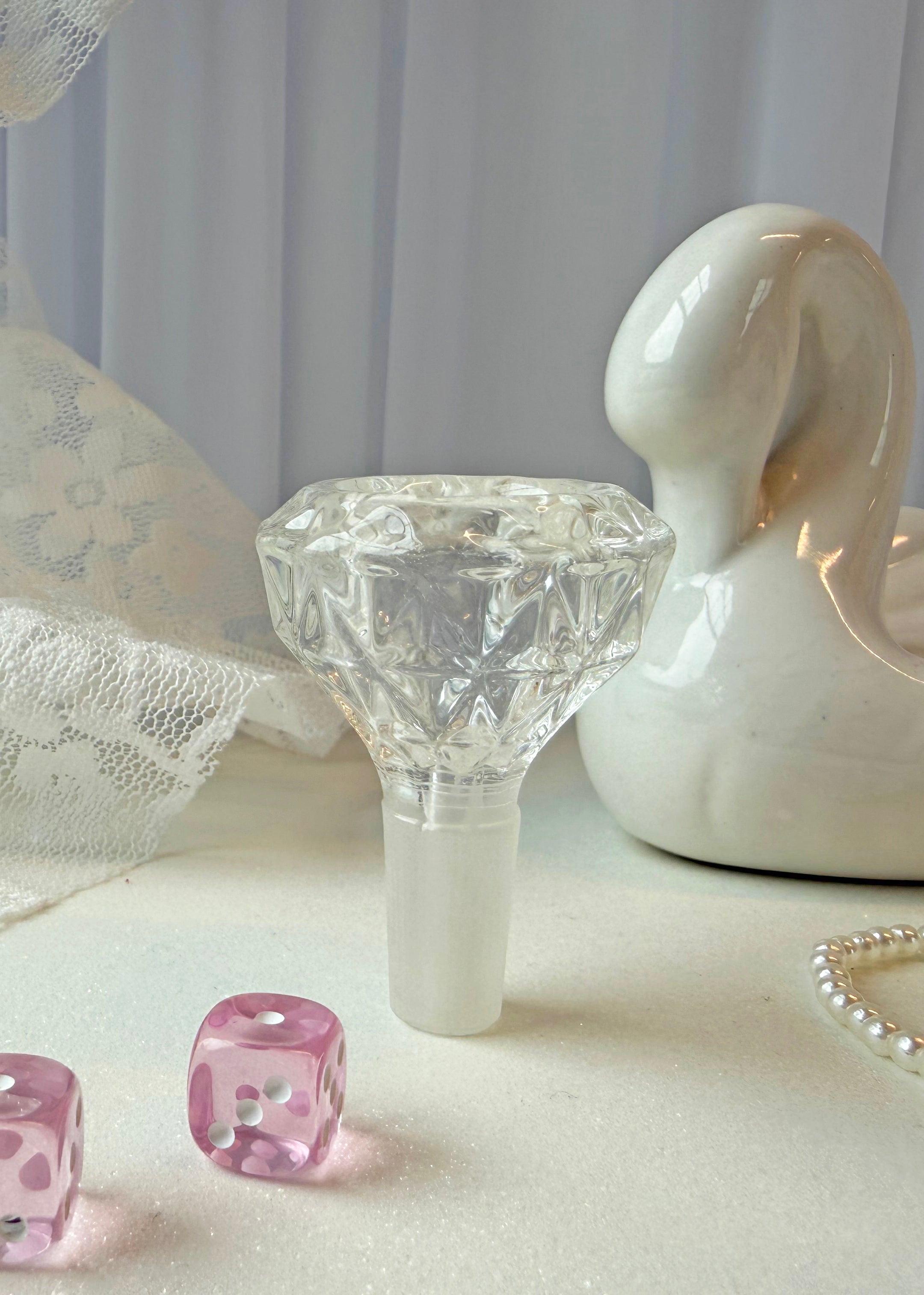 The multifaceted gemstone texture on this slide is so so so gorgeous, and the clear glass only enhances the diamond vibes! This slide is made of borosilicate glass and looks stunning in any bong!