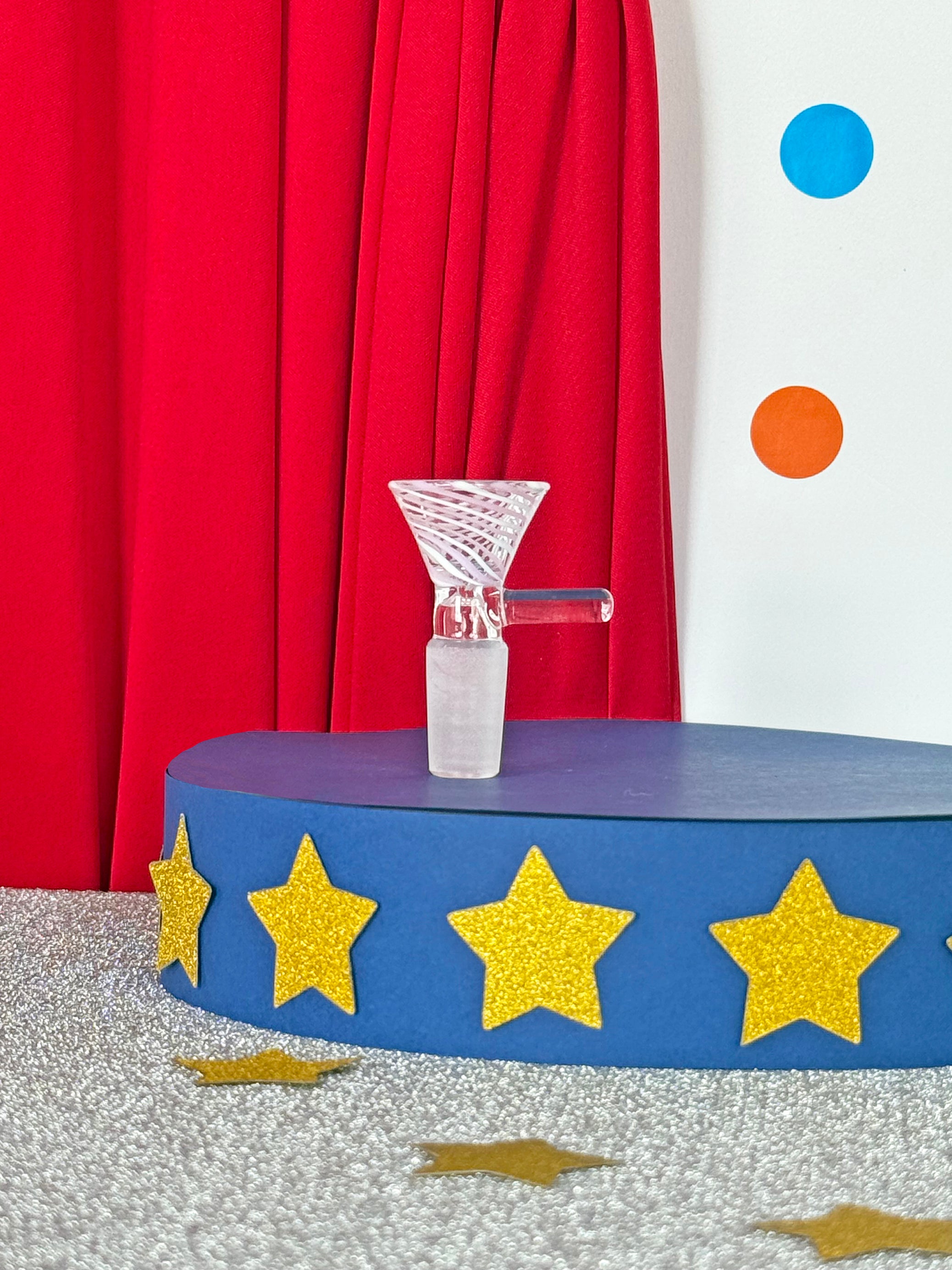Made of borosilicate glass. Male, 14mm, fits almost all the bongs we sell!