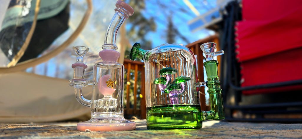 This might be the cutest piece we've ever seen! This cloche-style bong has a huge smoke chamber that features a cutie little bonsai tree inside! The perc on this piece is super unique - there's little holes in the bottom of the dome that filter smoke through the water. She even has a built in ash catcher!