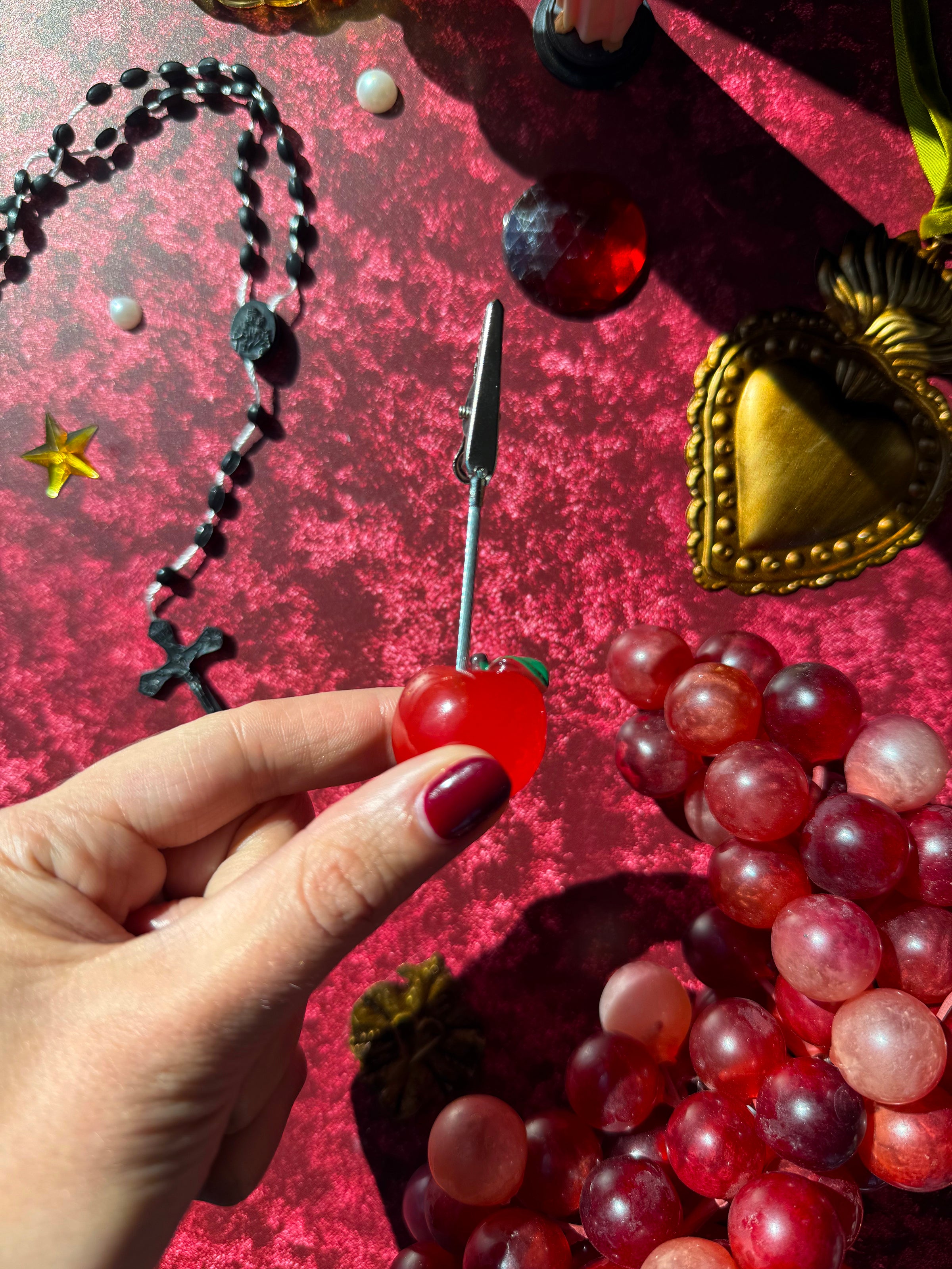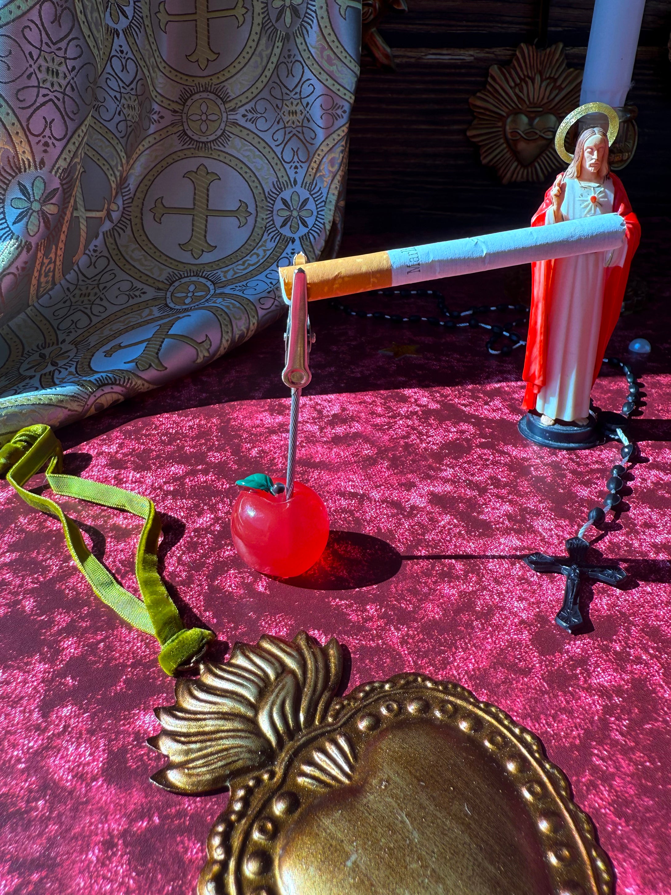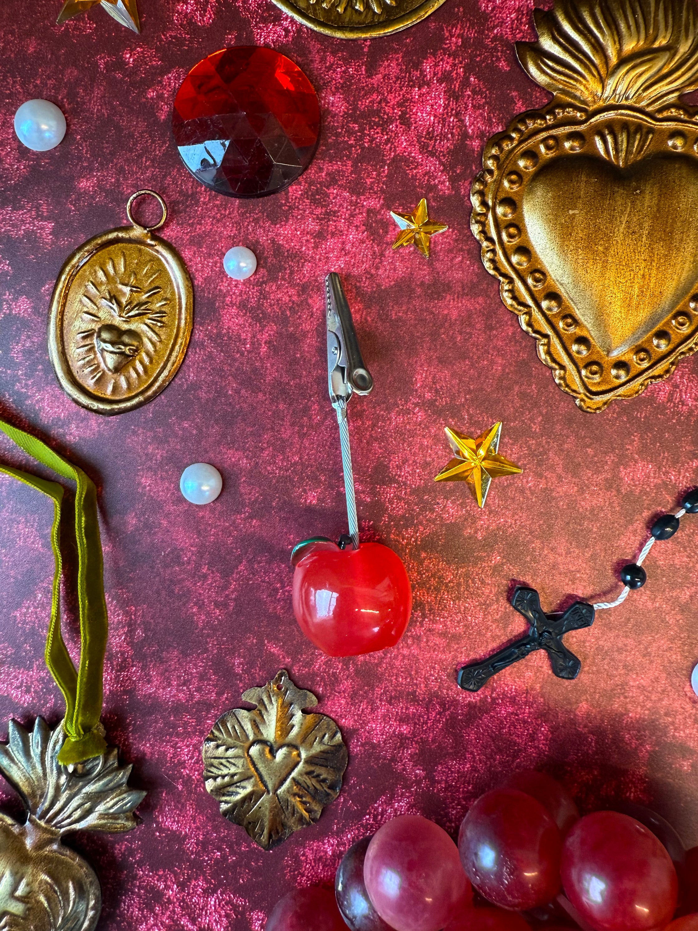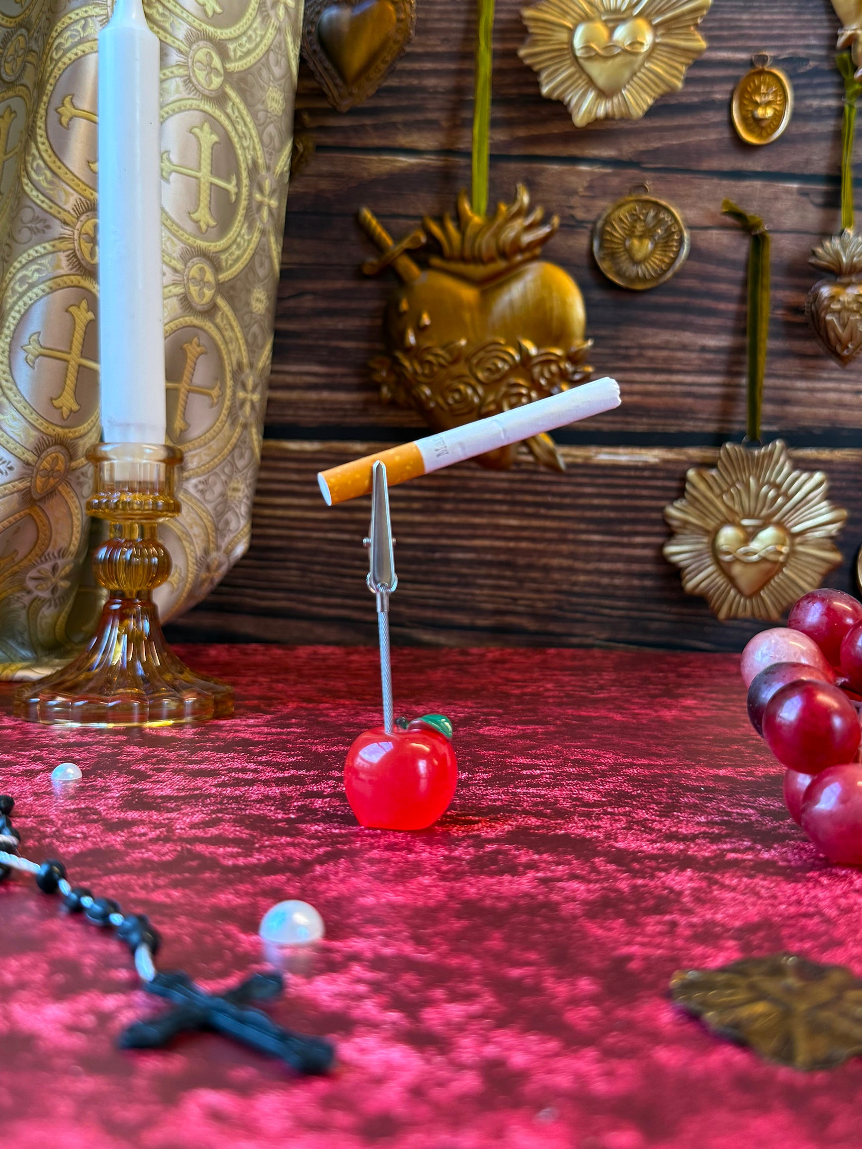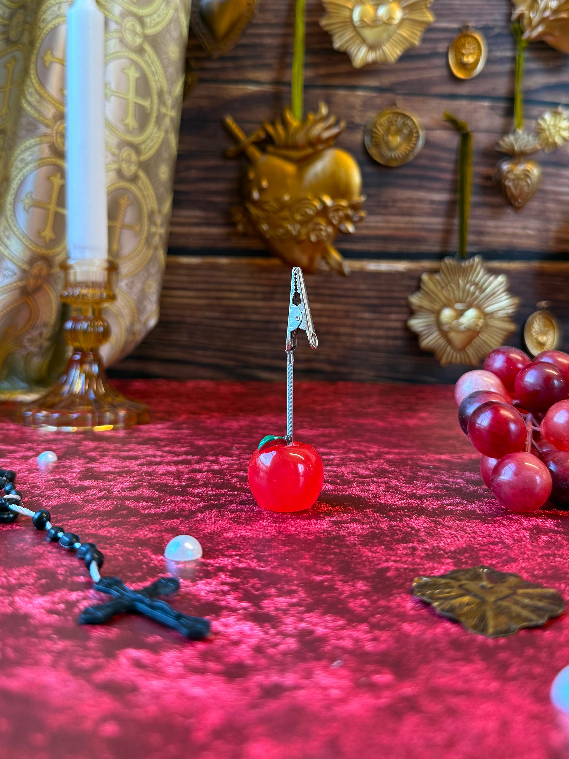 Joint stays clipped between the silver claws on the bottom of the clip. A shiny red apple tops these clips! Measures 3.5" tall.