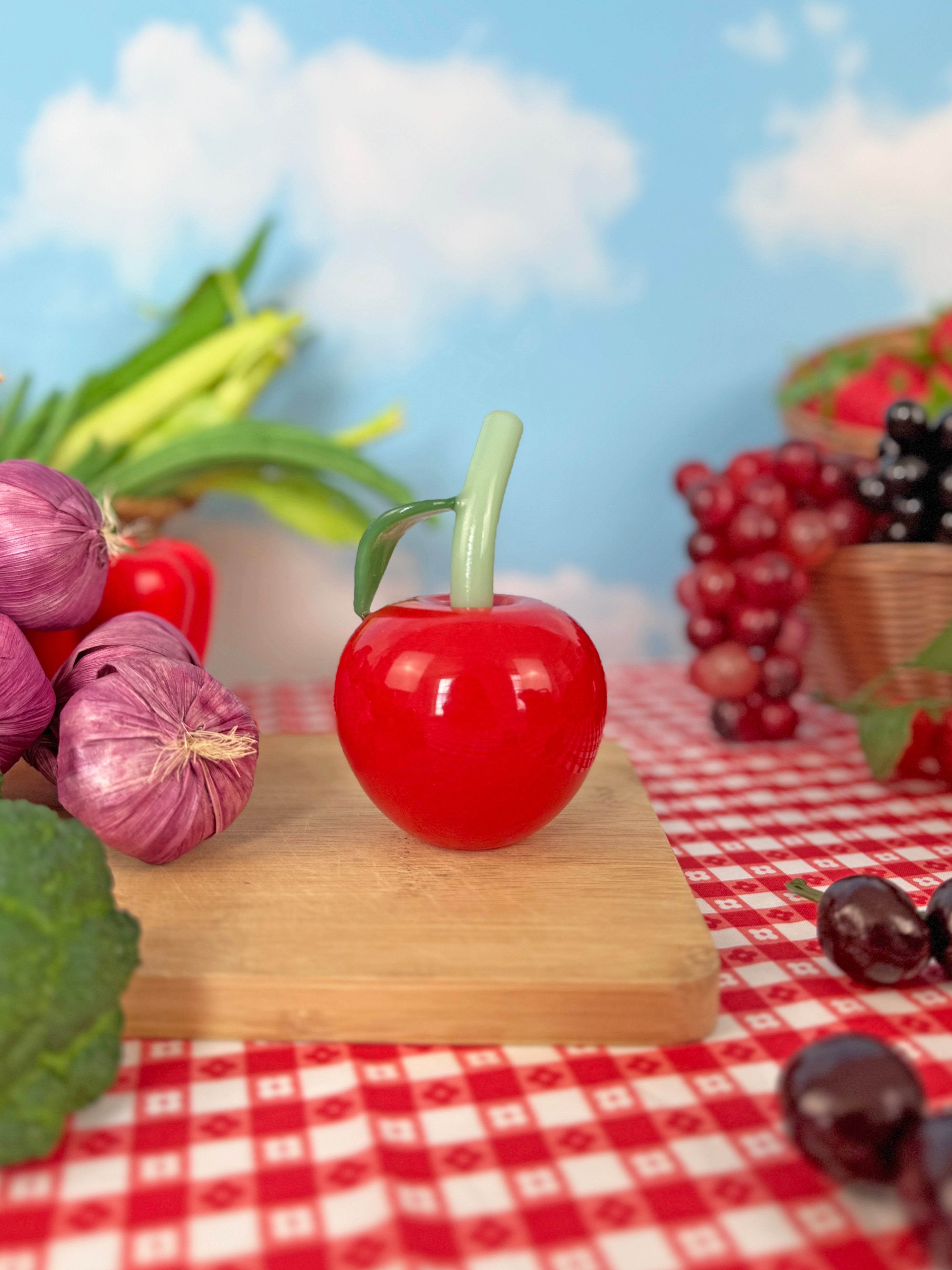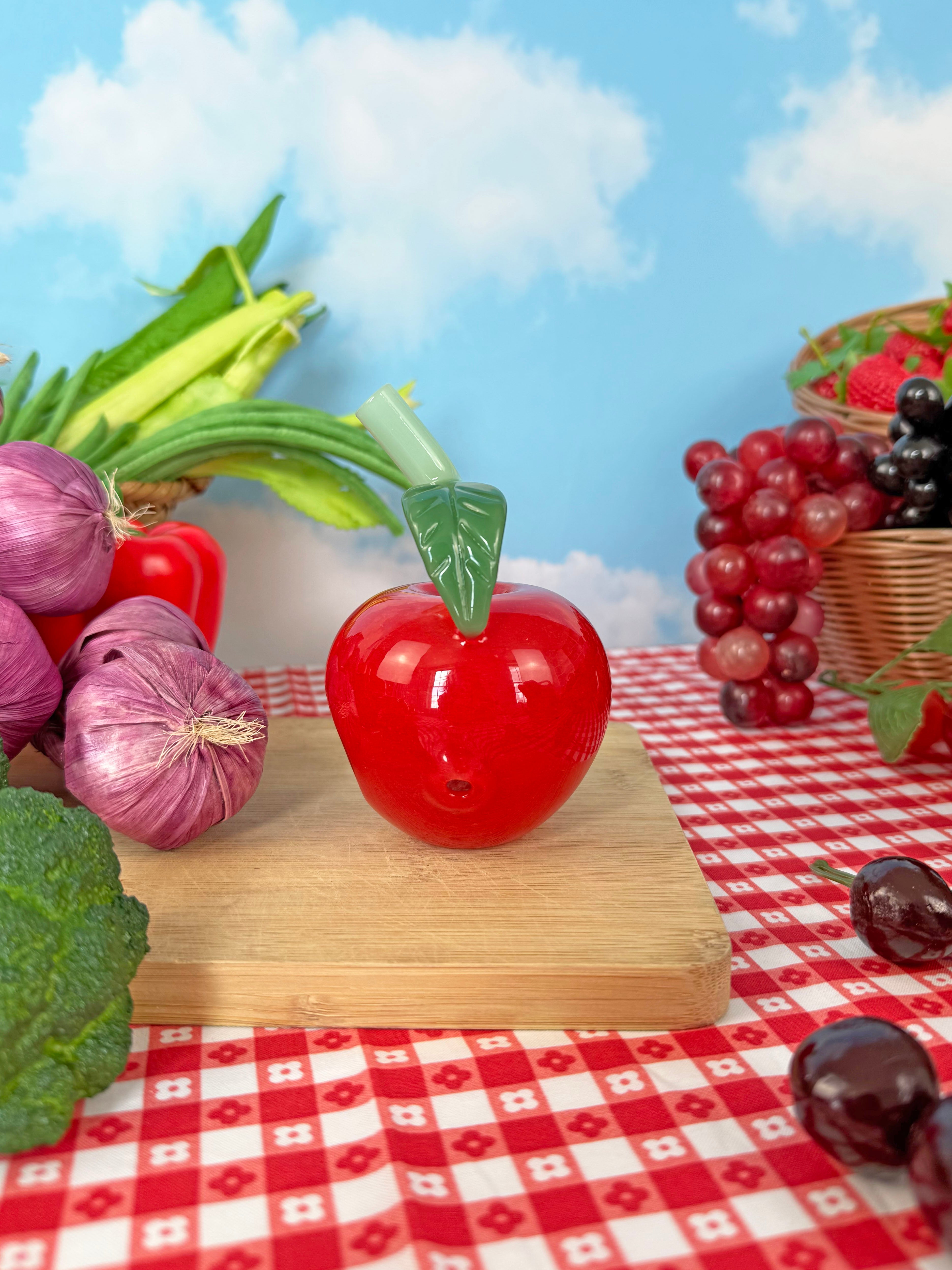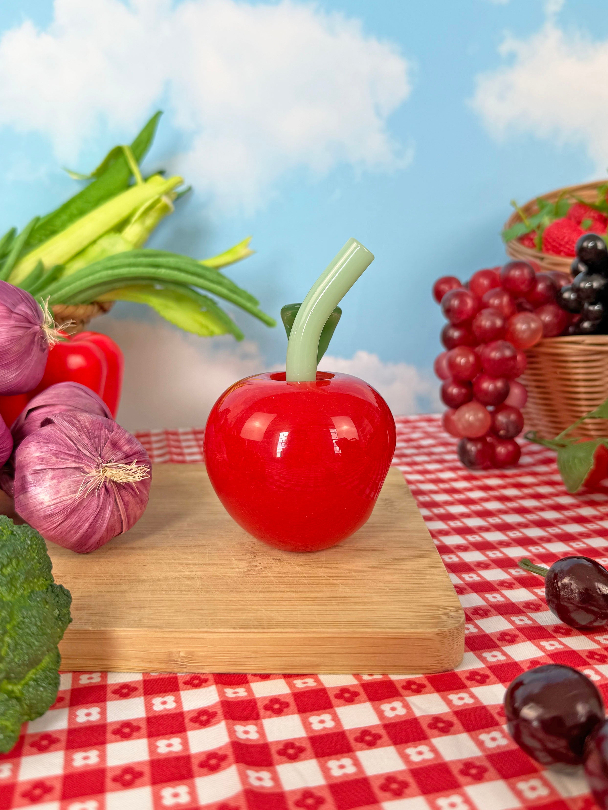 This cutie apple pipe fits perfectly in your hand and has the cutest little jade green stem and leaf! Would look adorable sitting on a shelf when not in use and is sure to be a conversation starter at your next sesh.