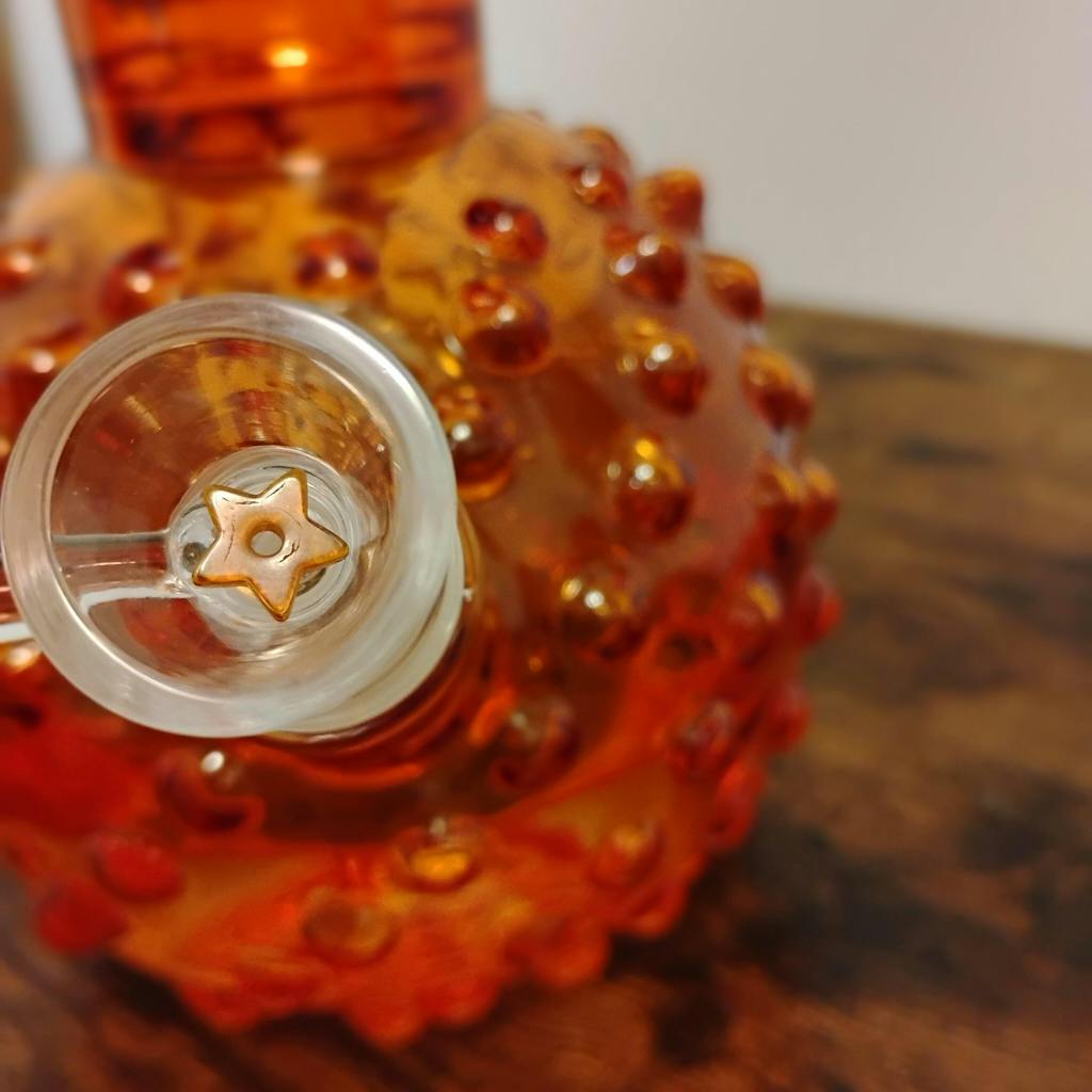 We're obsessed with the unique hobnail texture on this bong! The little bumps covering the entire piece not only make this bong look GORG, they also provide extra grip if you're accident prone like us! Looks adorable decorating a shelf, table, or bar cart and is sure to be a conversation starter :)