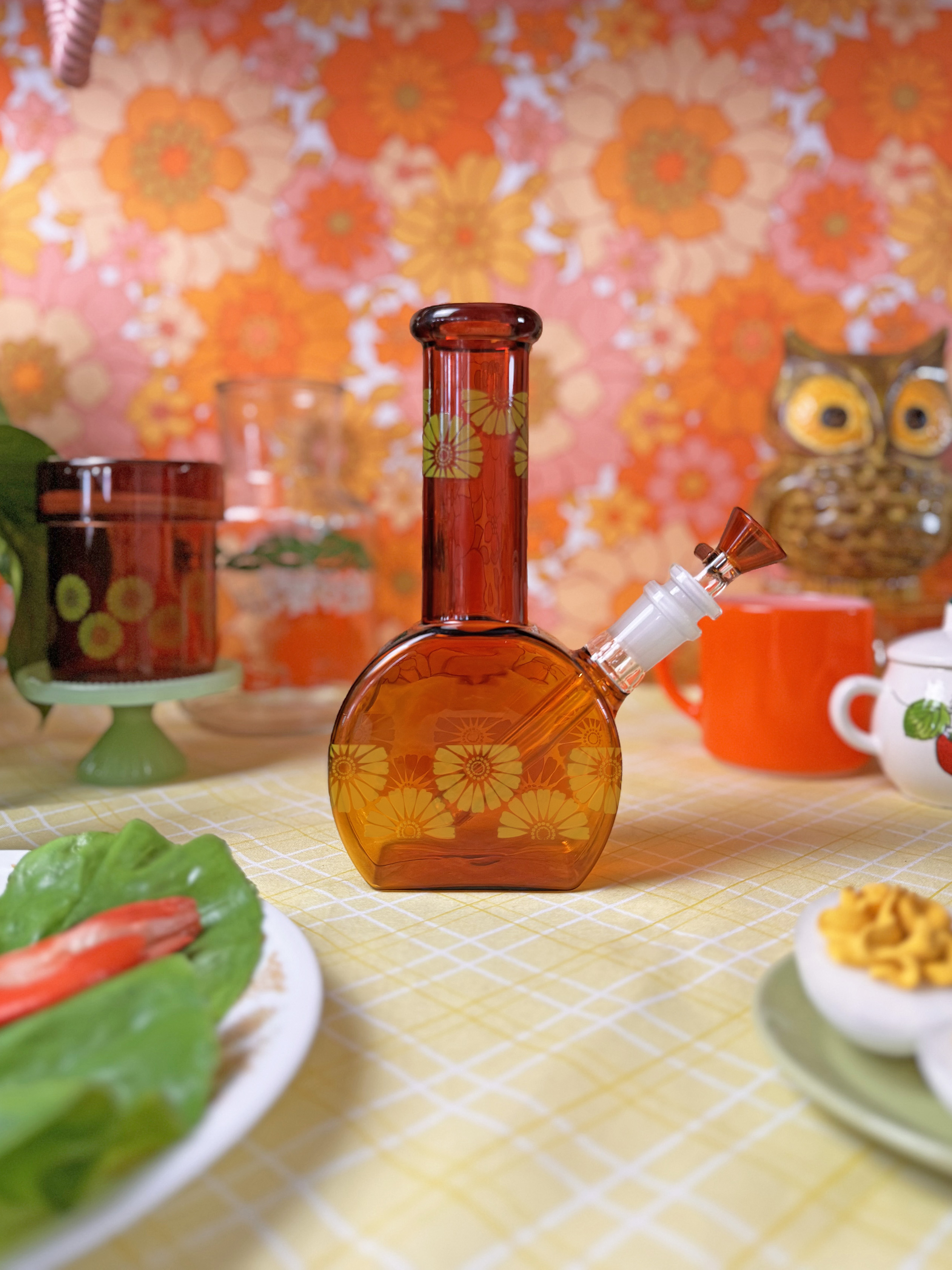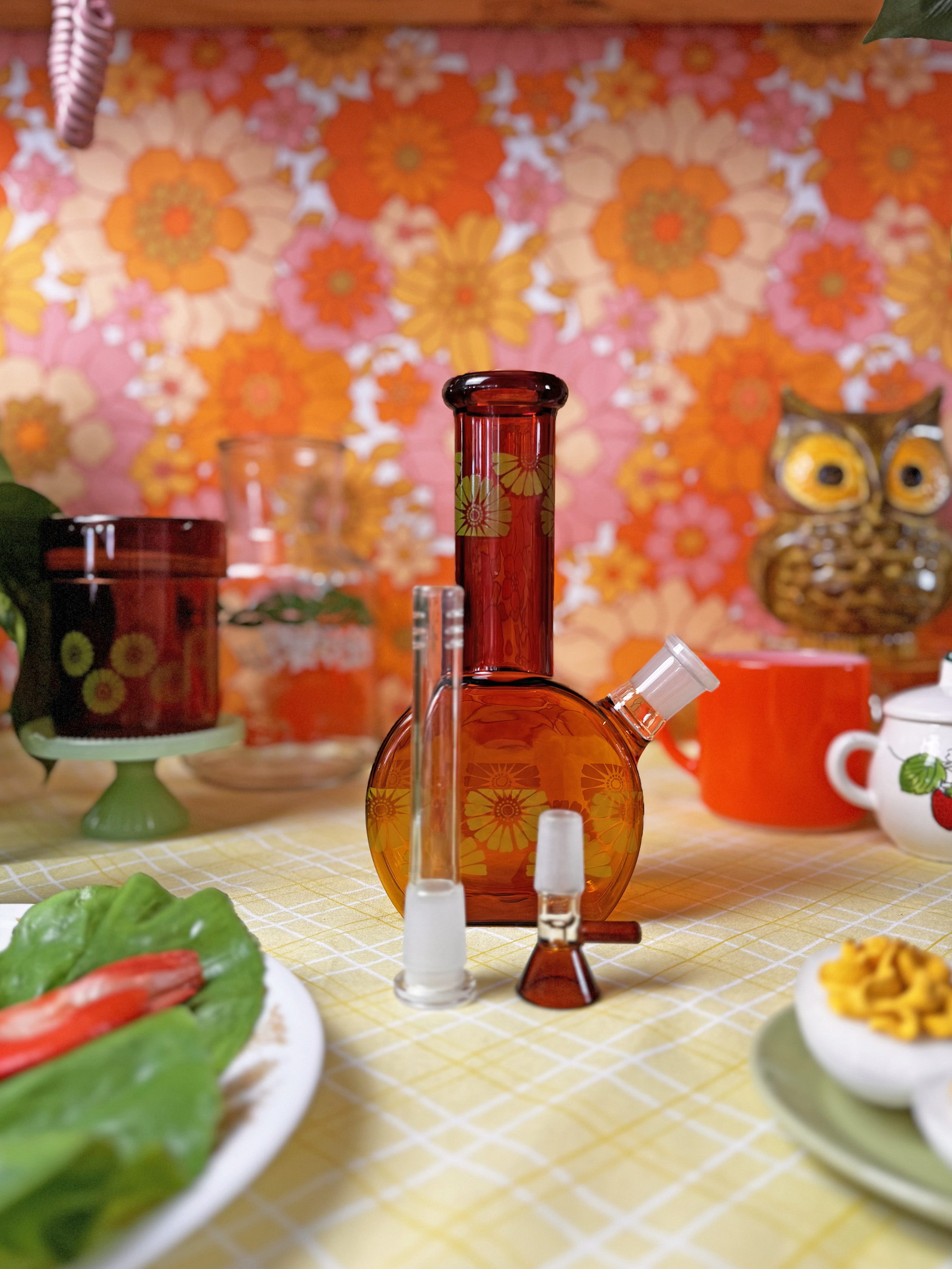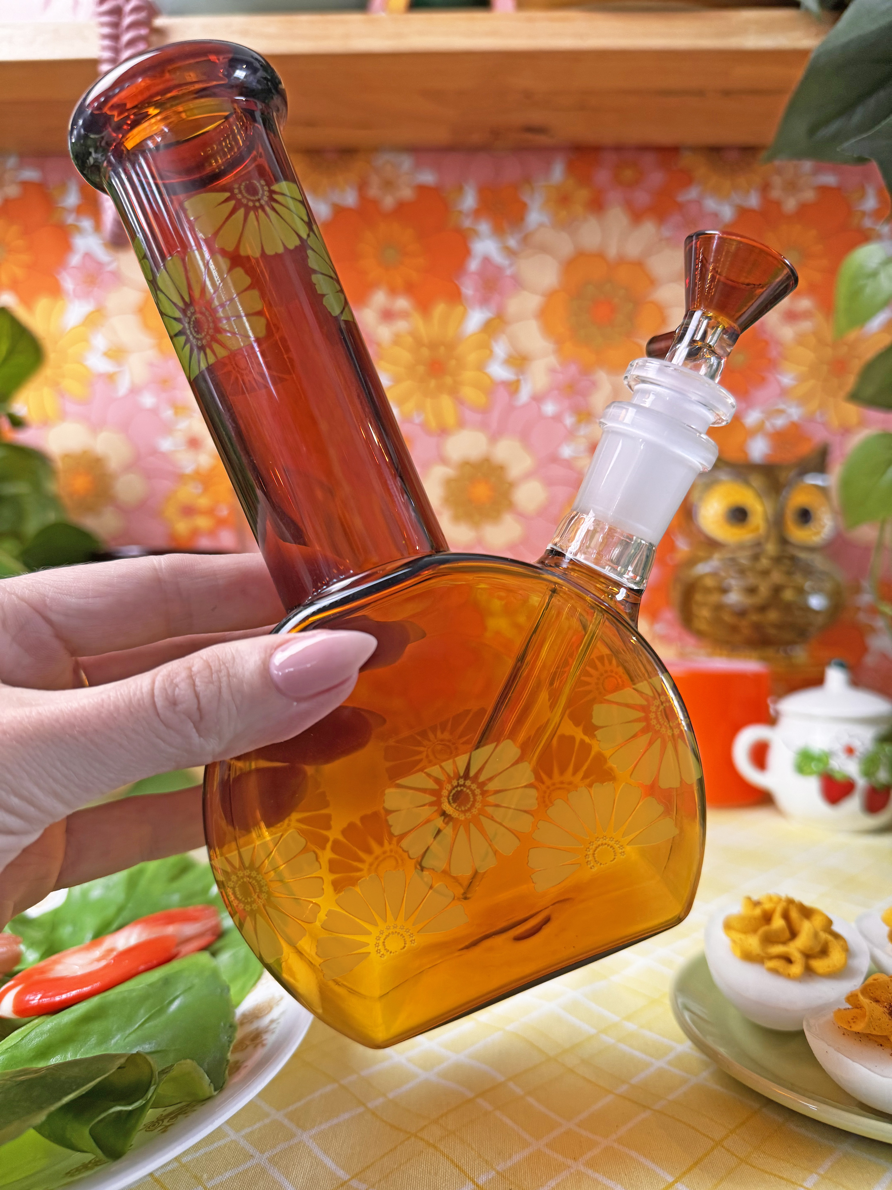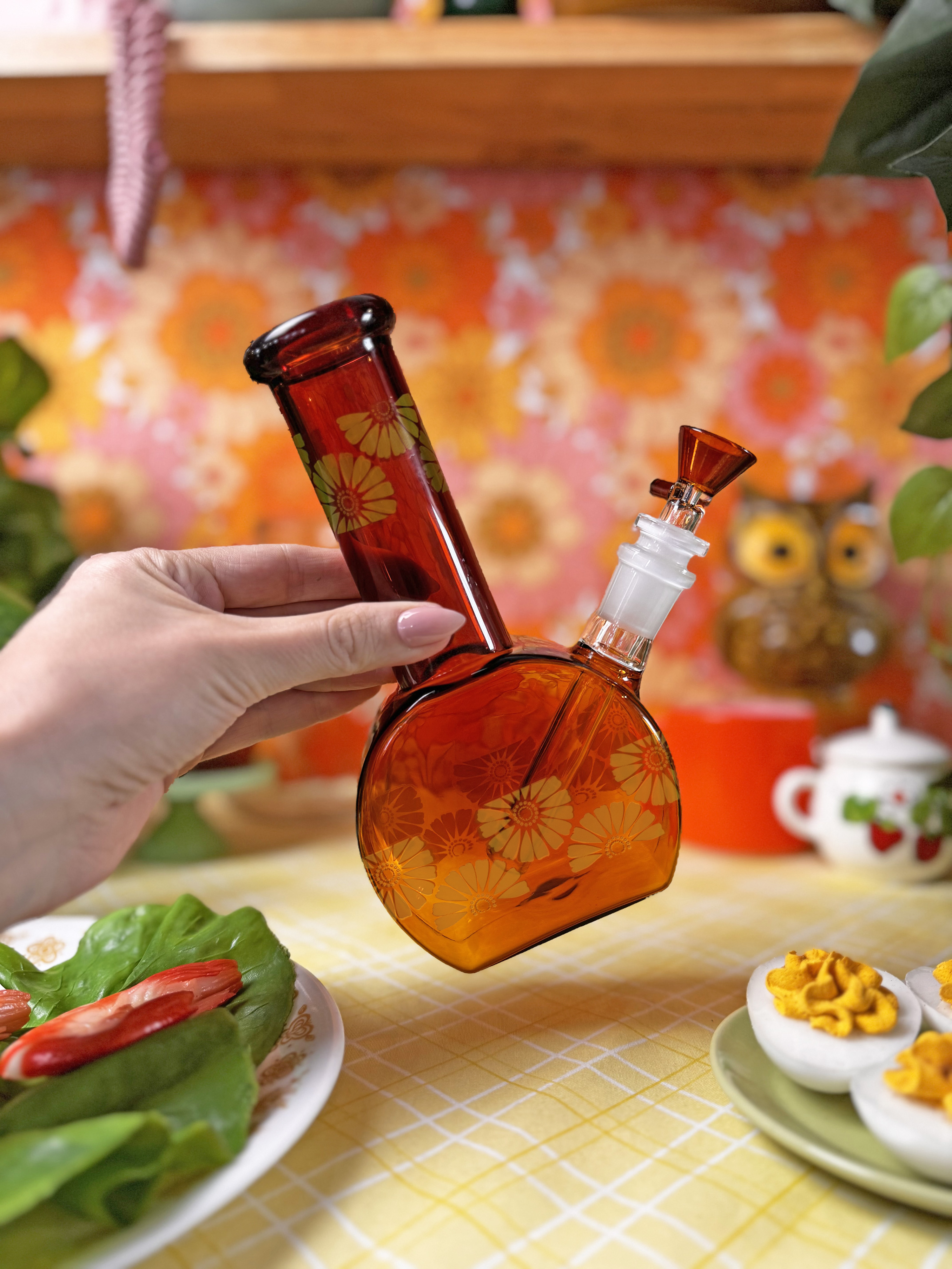 It doesn't get cuter than this! This mini bong features our retro sunflower print on the prettiest amber glass, creating a piece that's as eye-catching as it is functional! Also guaranteed to look amazing on your desk or shelf when not in use!