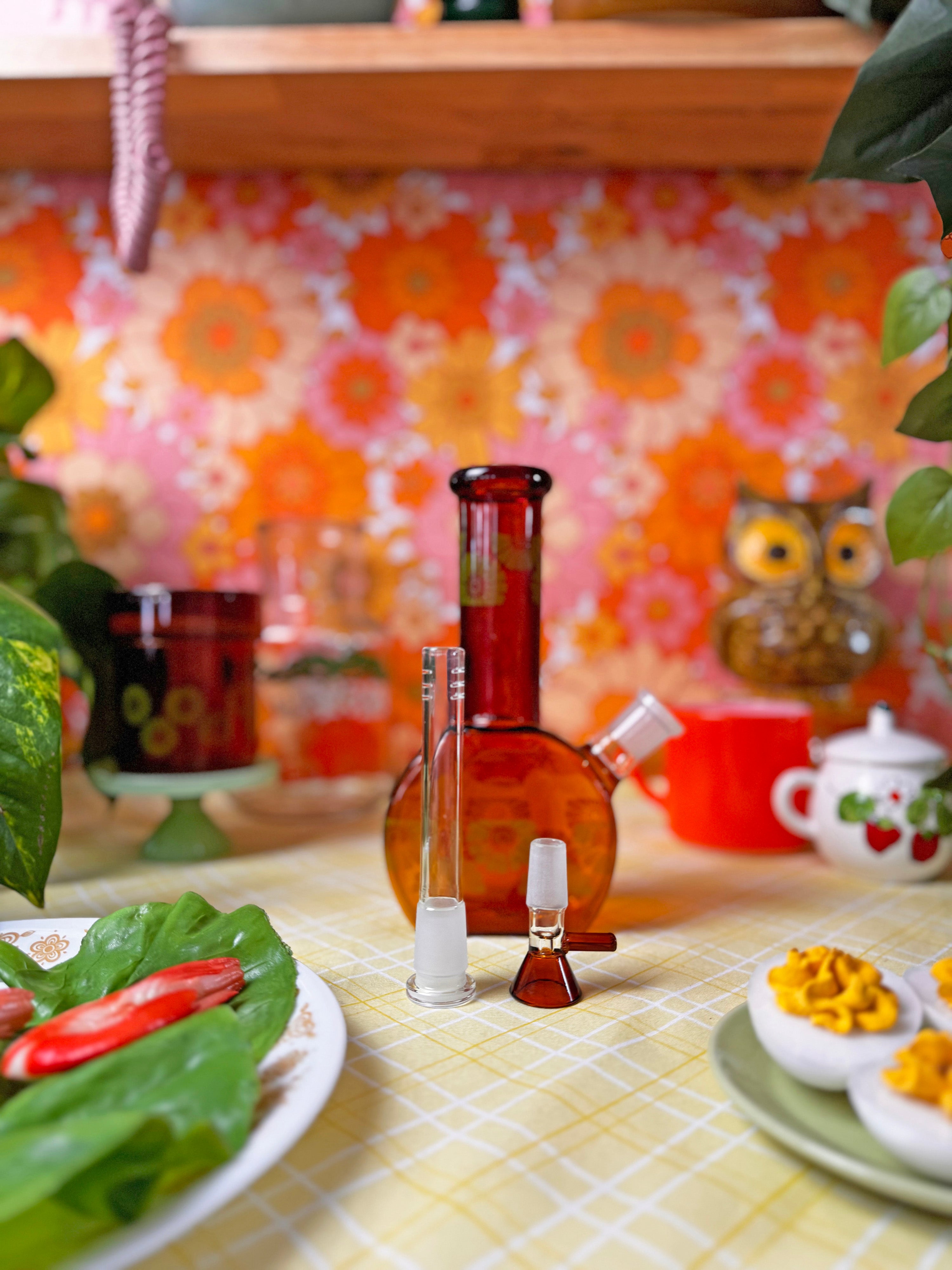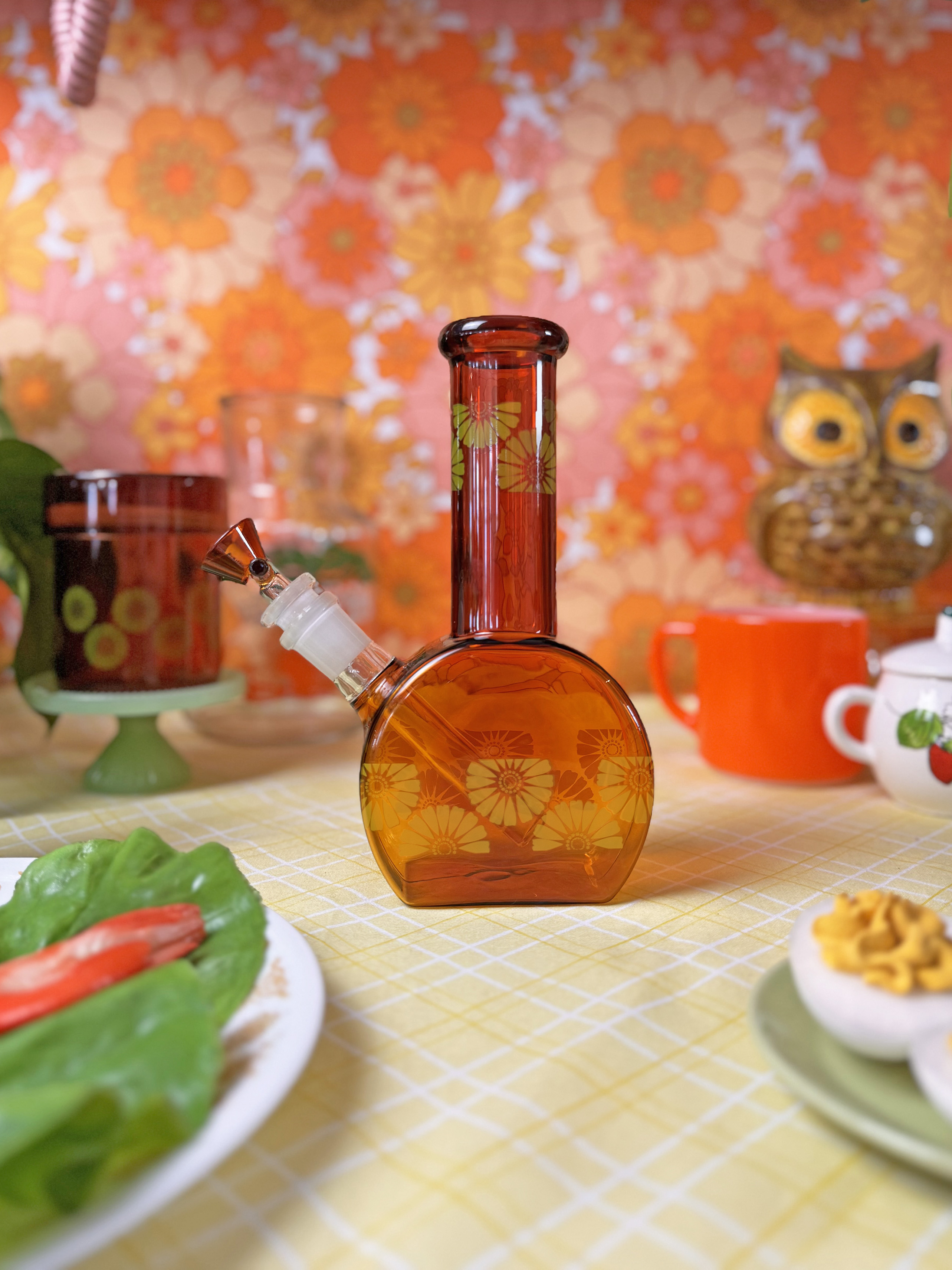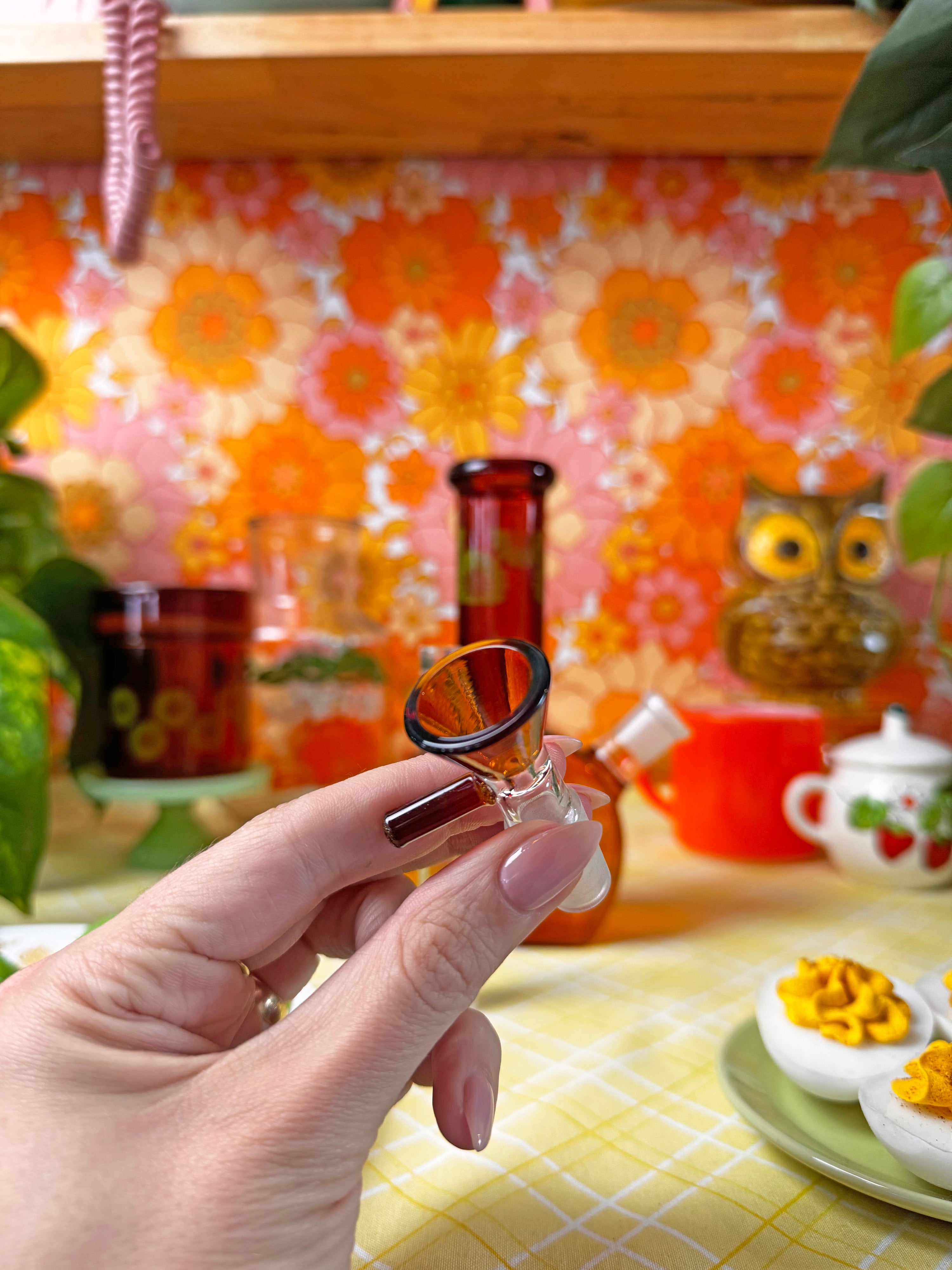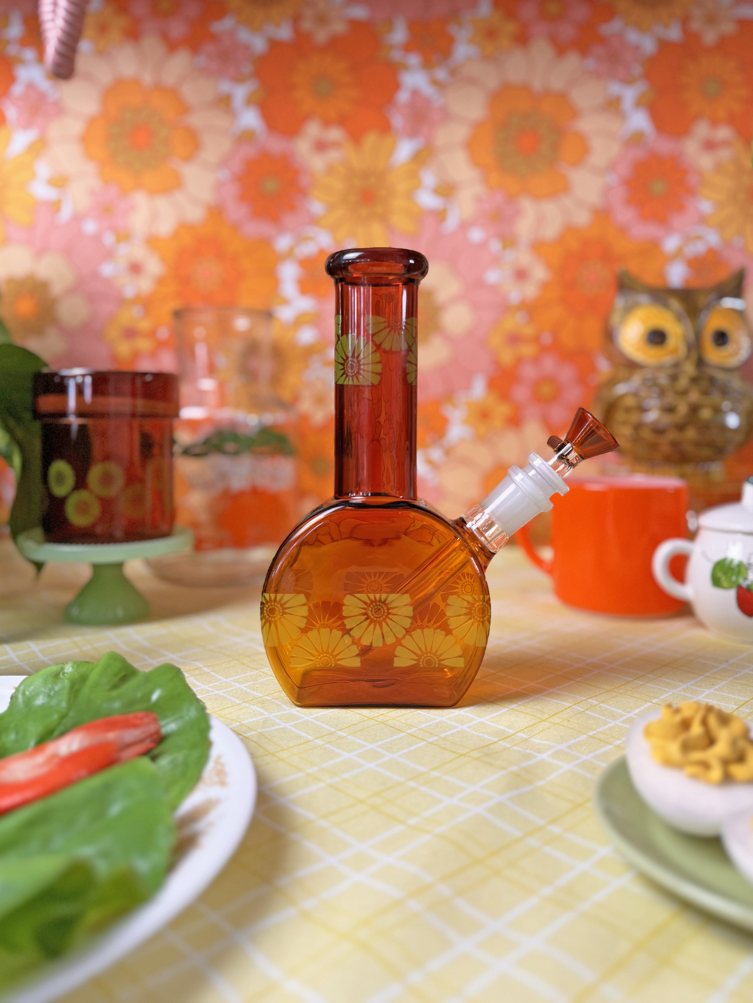 It doesn't get cuter than this! This mini bong features our retro sunflower print on the prettiest amber glass, creating a piece that's as eye-catching as it is functional! Also guaranteed to look amazing on your desk or shelf when not in use!