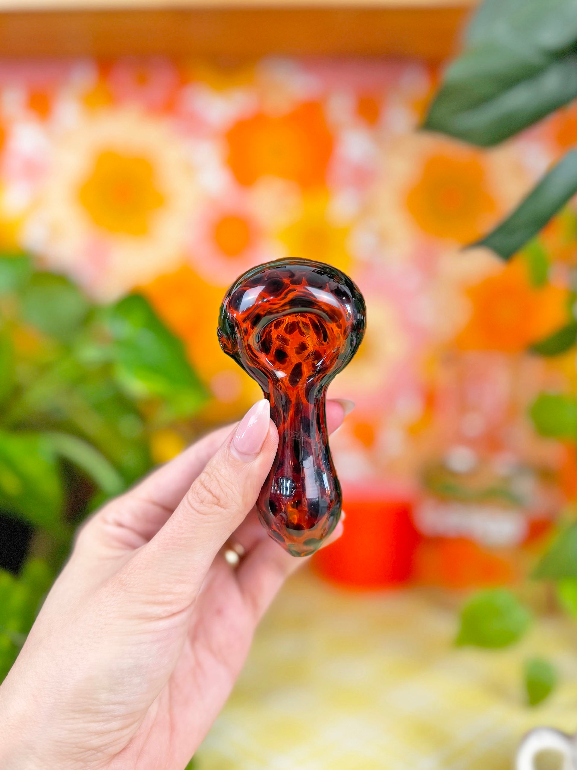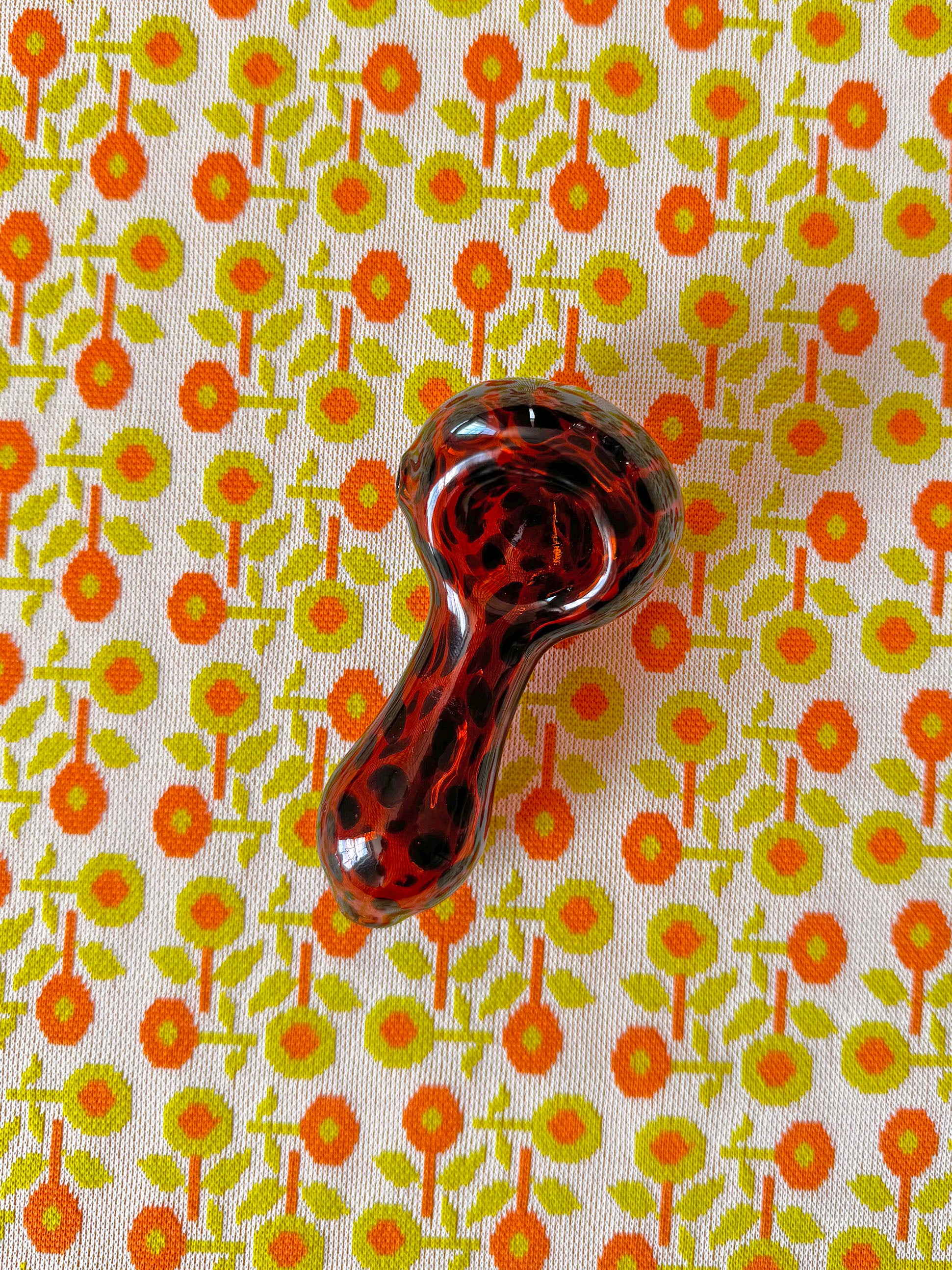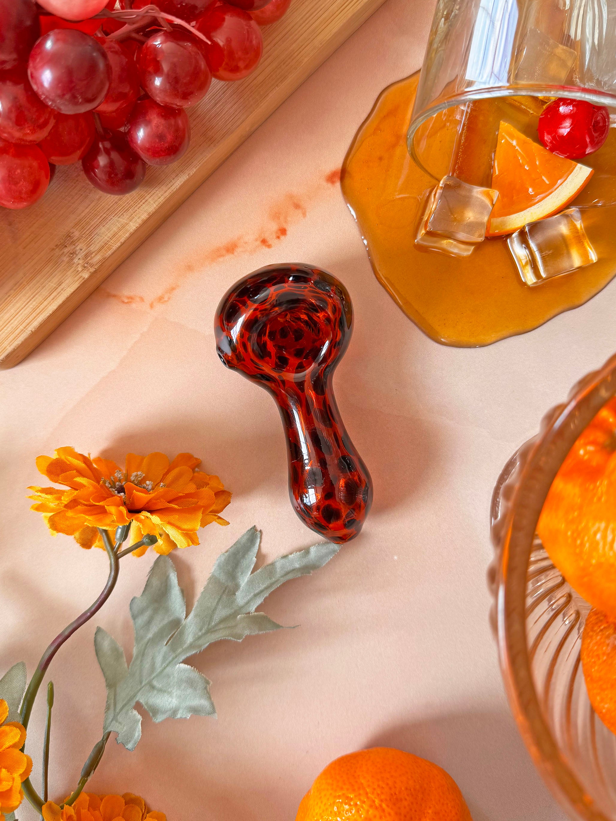 This absolutely gorgeous pipe is giving us good looks and the functionality! Made from amber glass with a black tortoise shell pattern all over, it's like having a work of art you can smoke out of. Perfect to keep out on a bar cart or a plant shelf if that's your thing <3