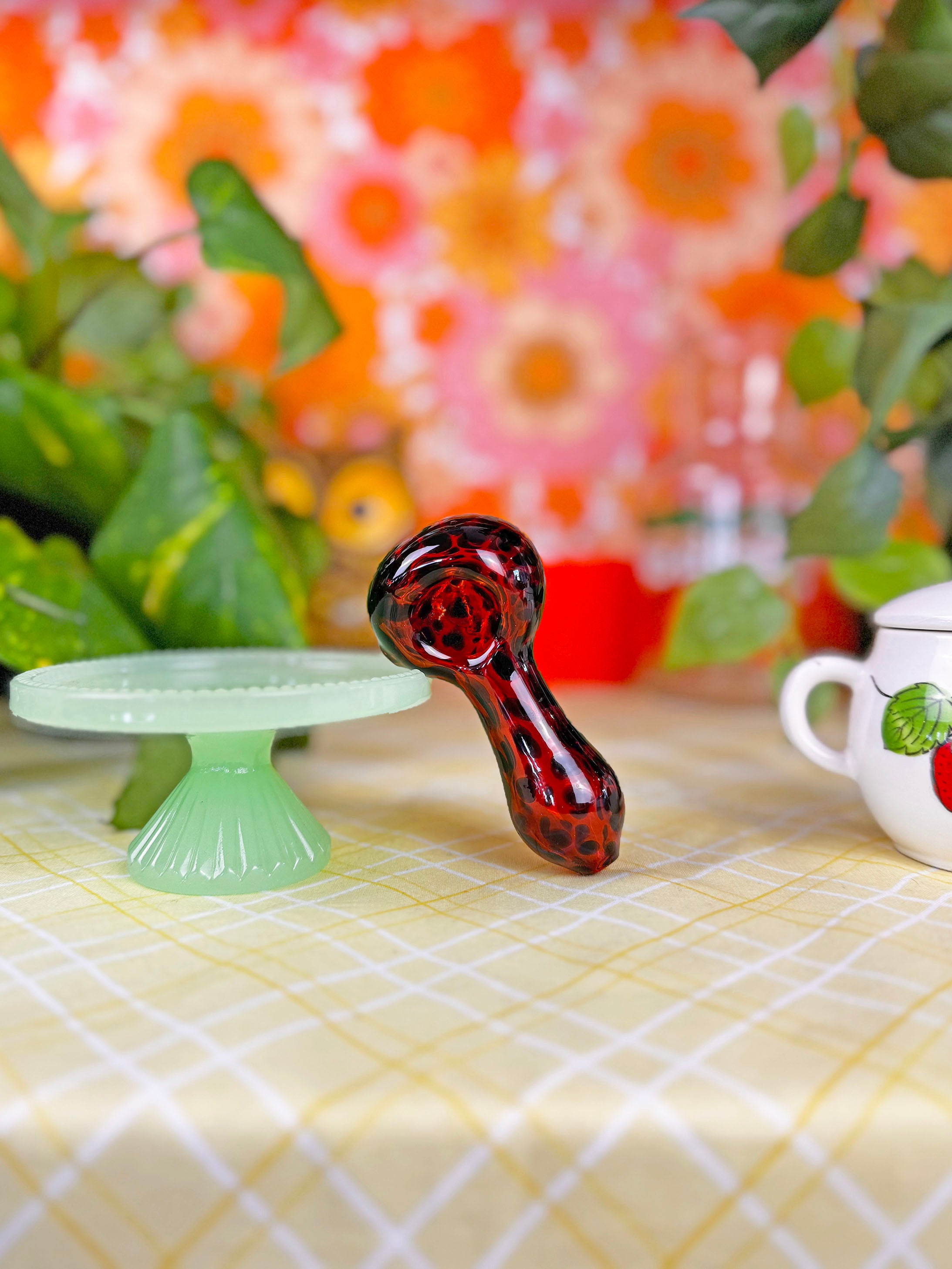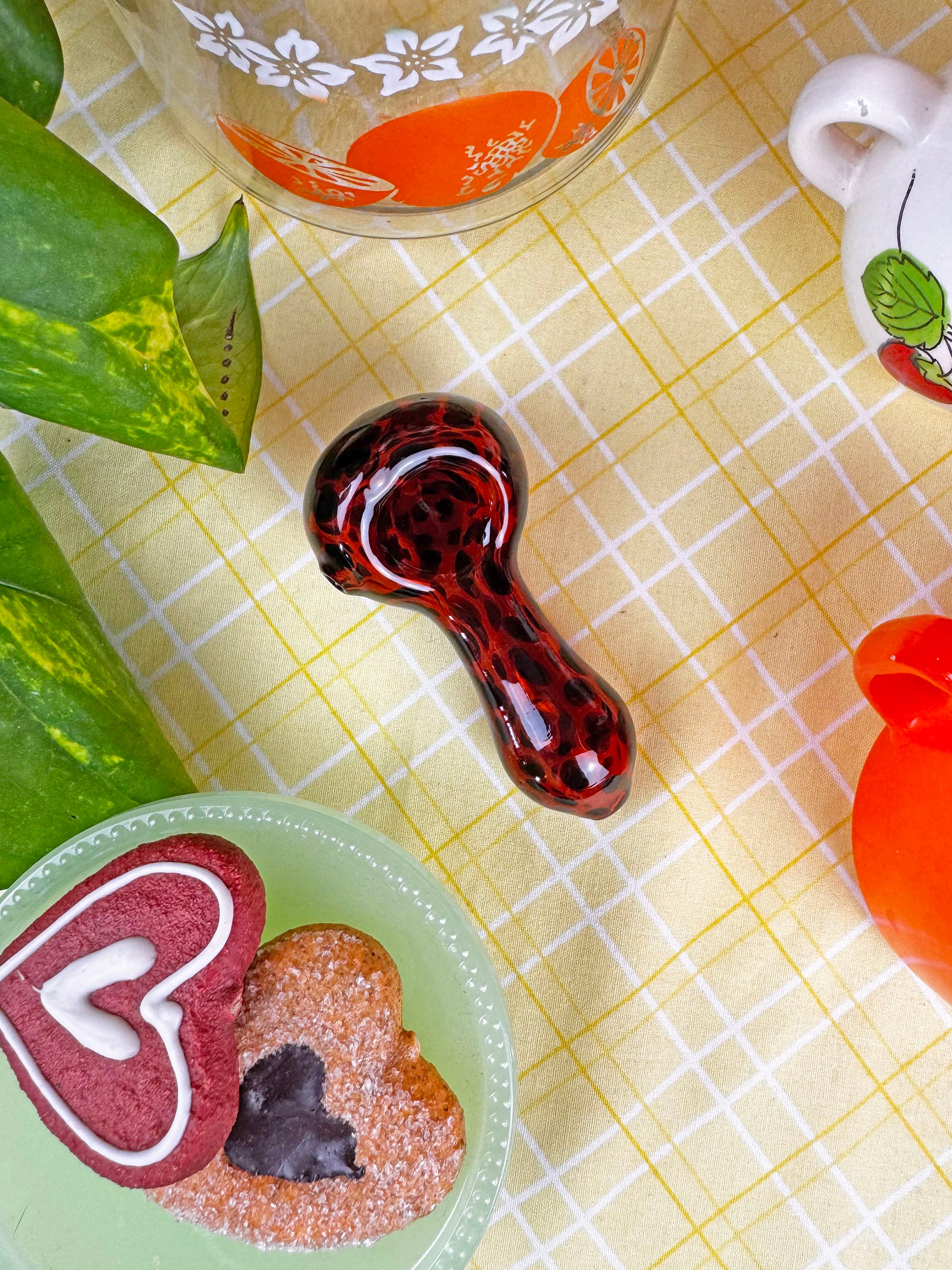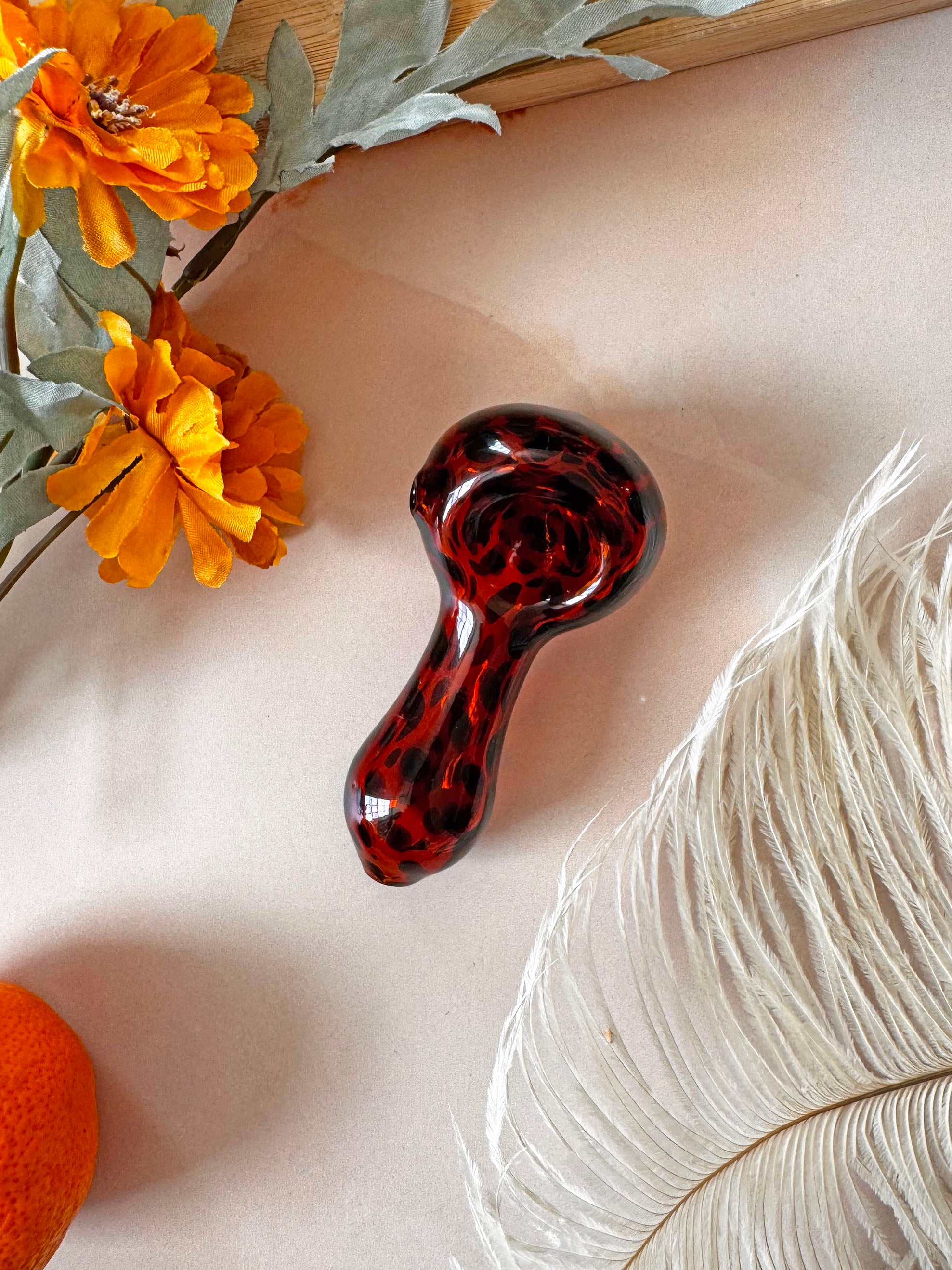 This absolutely gorgeous pipe is giving us good looks and the functionality! Made from amber glass with a black tortoise shell pattern all over, it's like having a work of art you can smoke out of. Perfect to keep out on a bar cart or a plant shelf if that's your thing <3