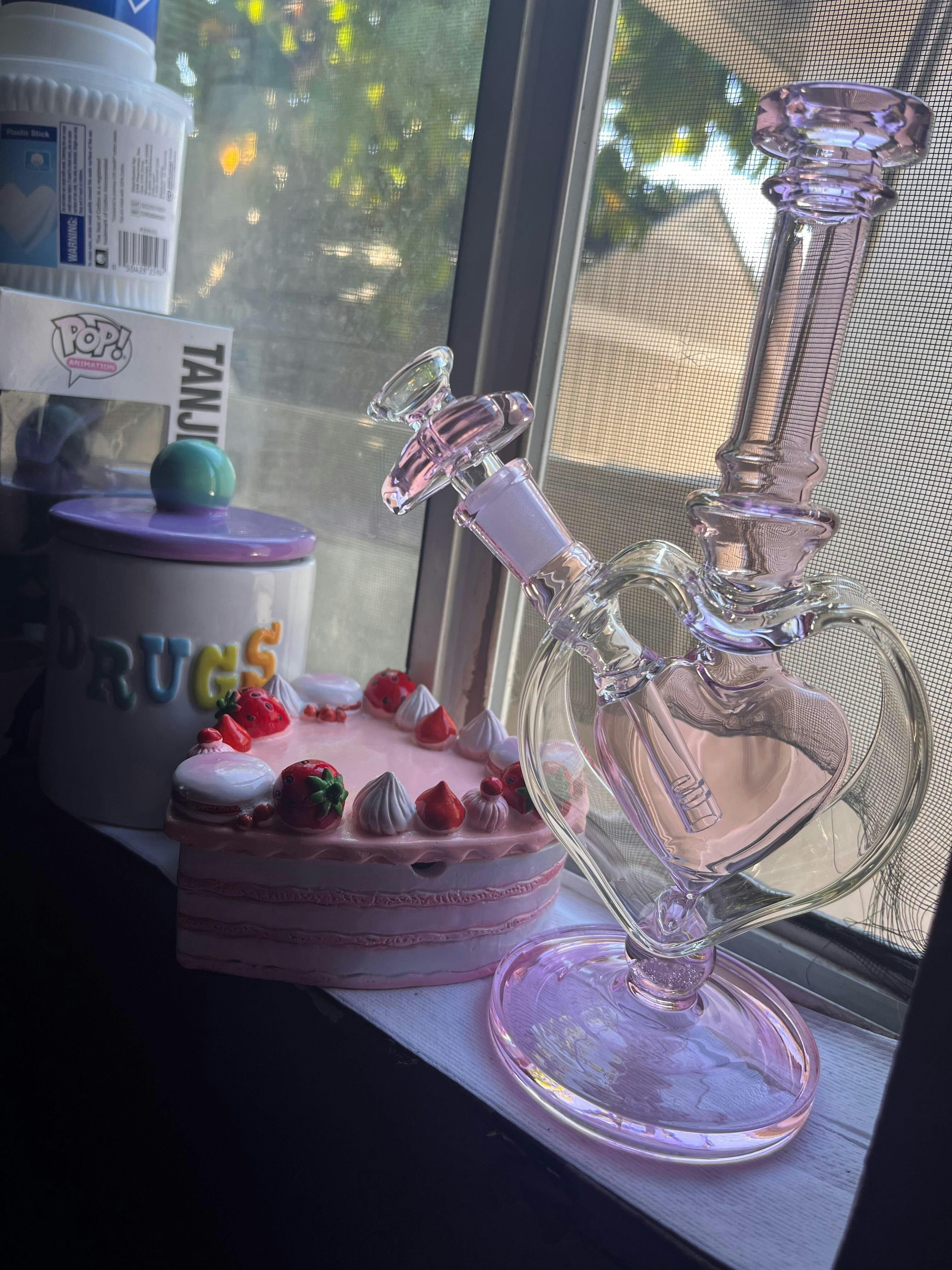 This sweet little piece features a pink heart encased inside a clear, heart-shaped smoke chamber with dreamy pops of pink throughout. She's perfectly compact, has a nice sturdy base (perf if you're accident prone like us), and is sure to be your new favorite piece! Fill her with water and she's ready to go.